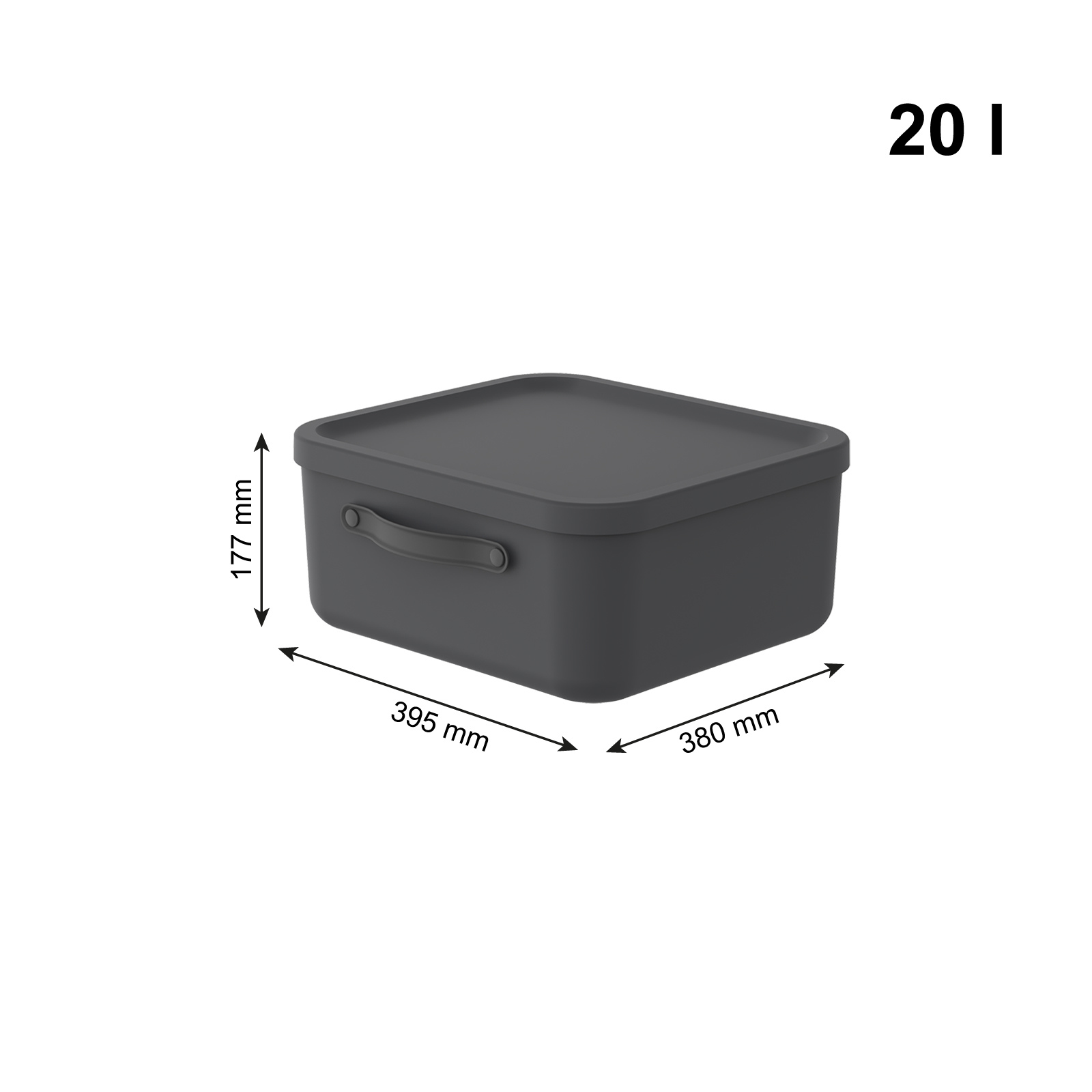 · charcoal schwarz · Polypropylen (PP) · abgerundete Kanten · Füllmenge: 20 Liter mehr