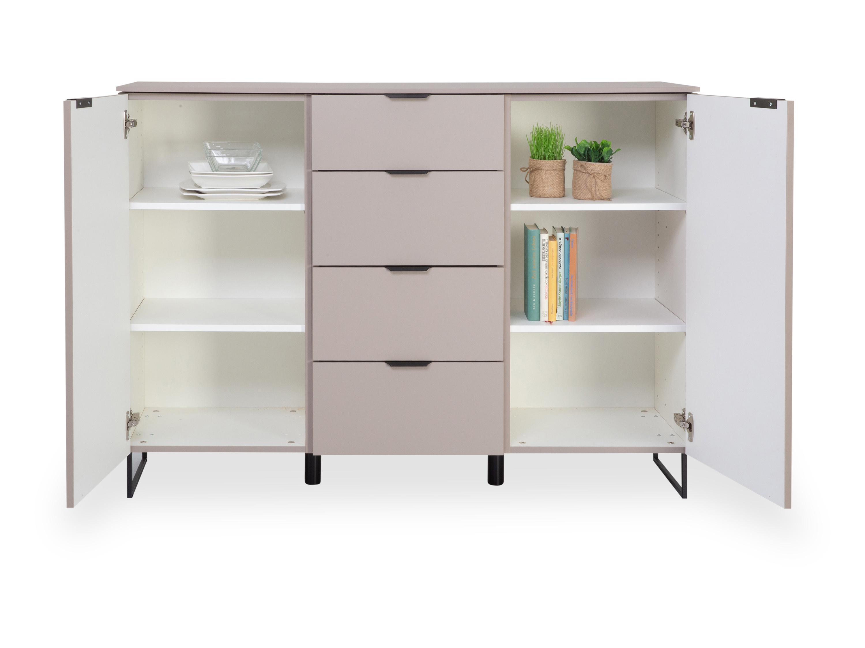 · mit zwei Türen und vier Schubladen