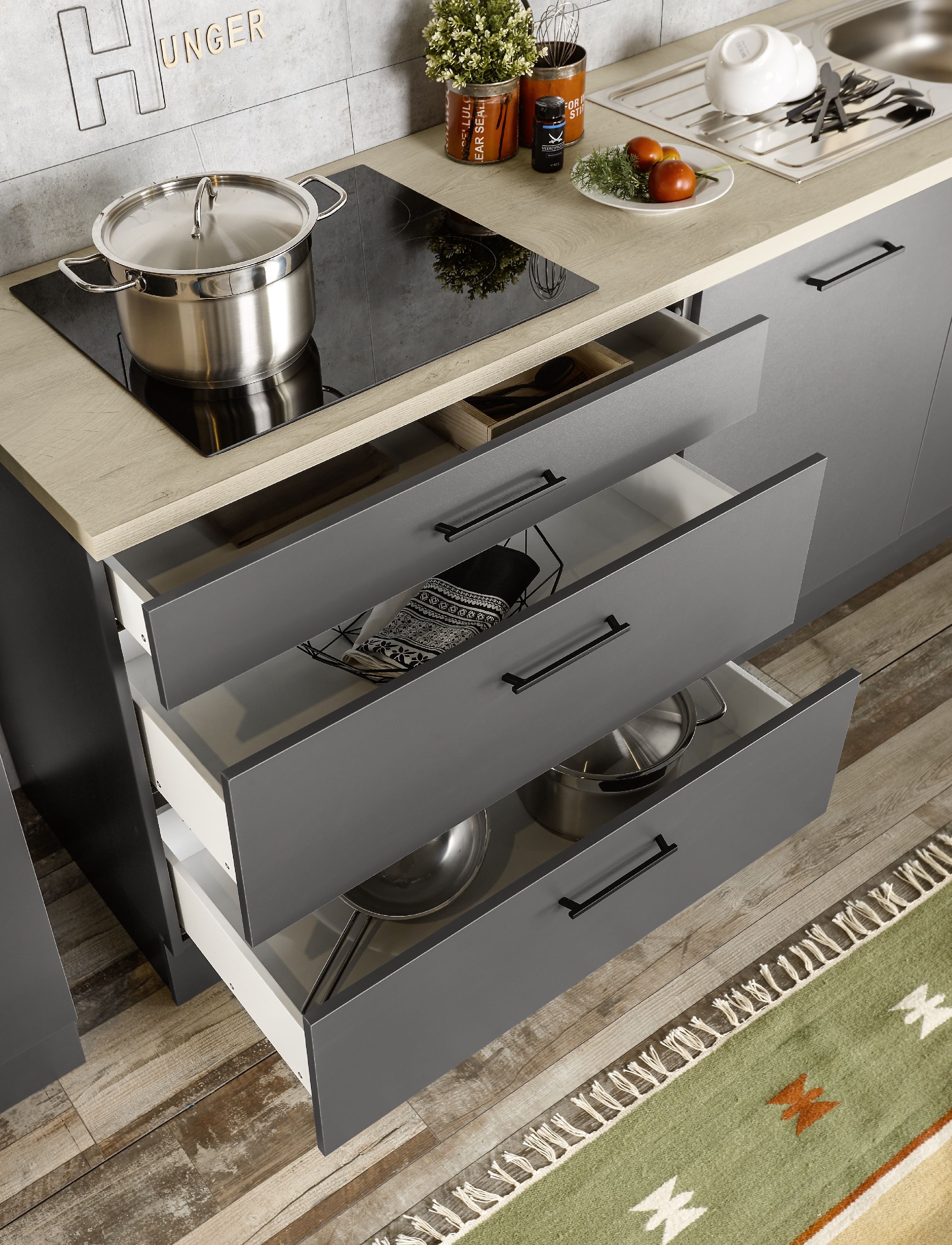 · MODELL: Nashville zerlegt · FRONT: Anthrazit · FRONT2: Elegance Endgrain Oak · GRIFF:... mehr