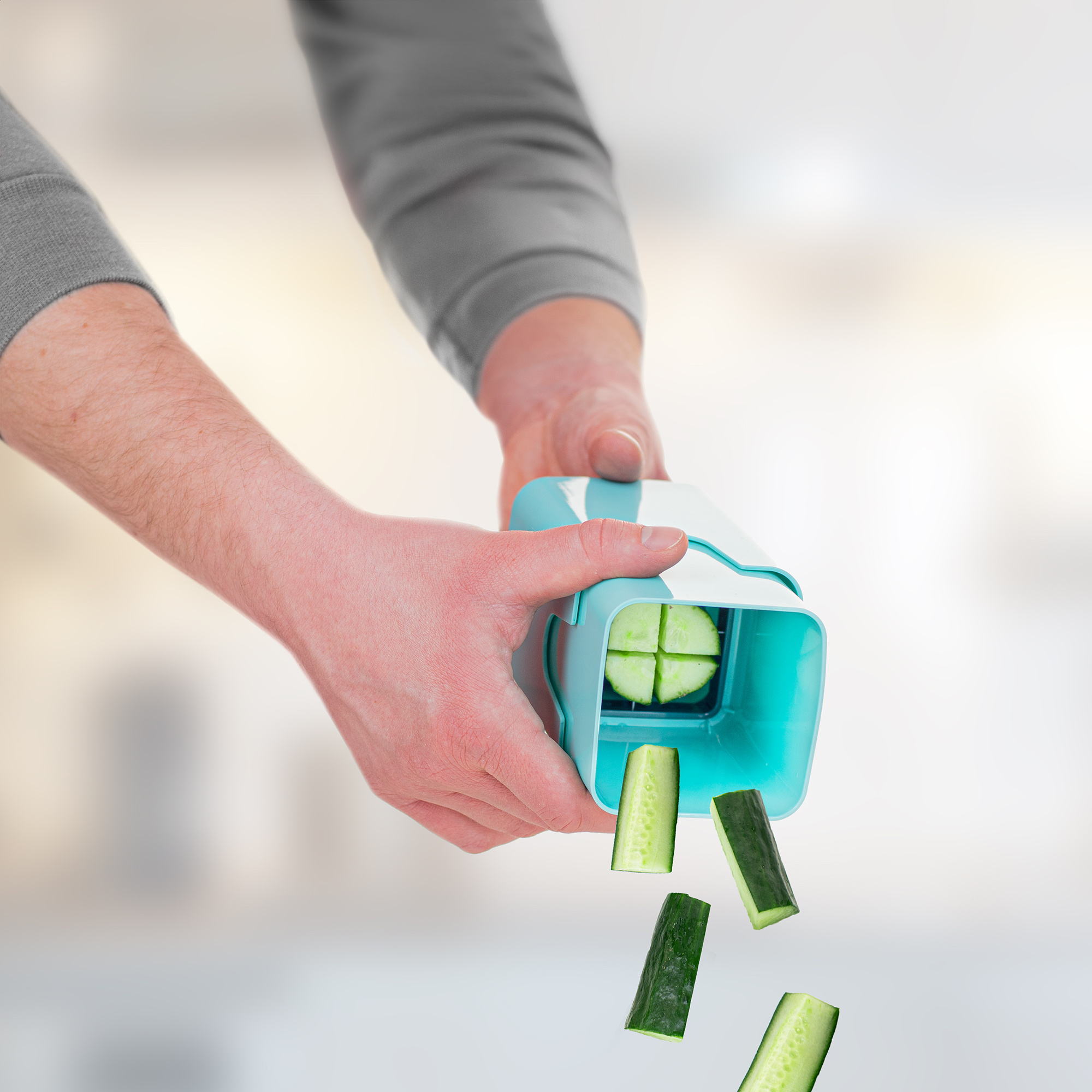 · Auffangbehälter für direktes Hineinschneiden!