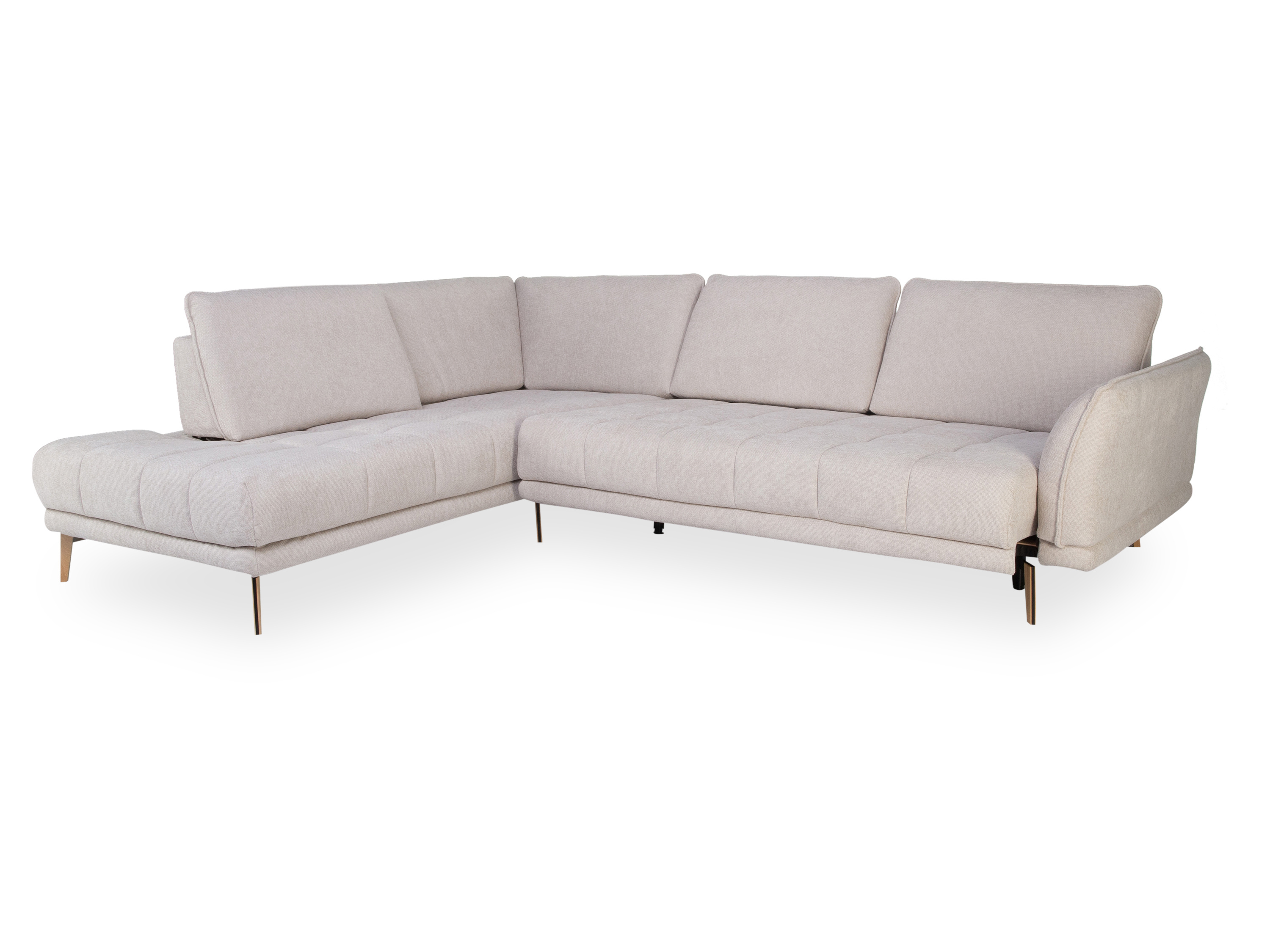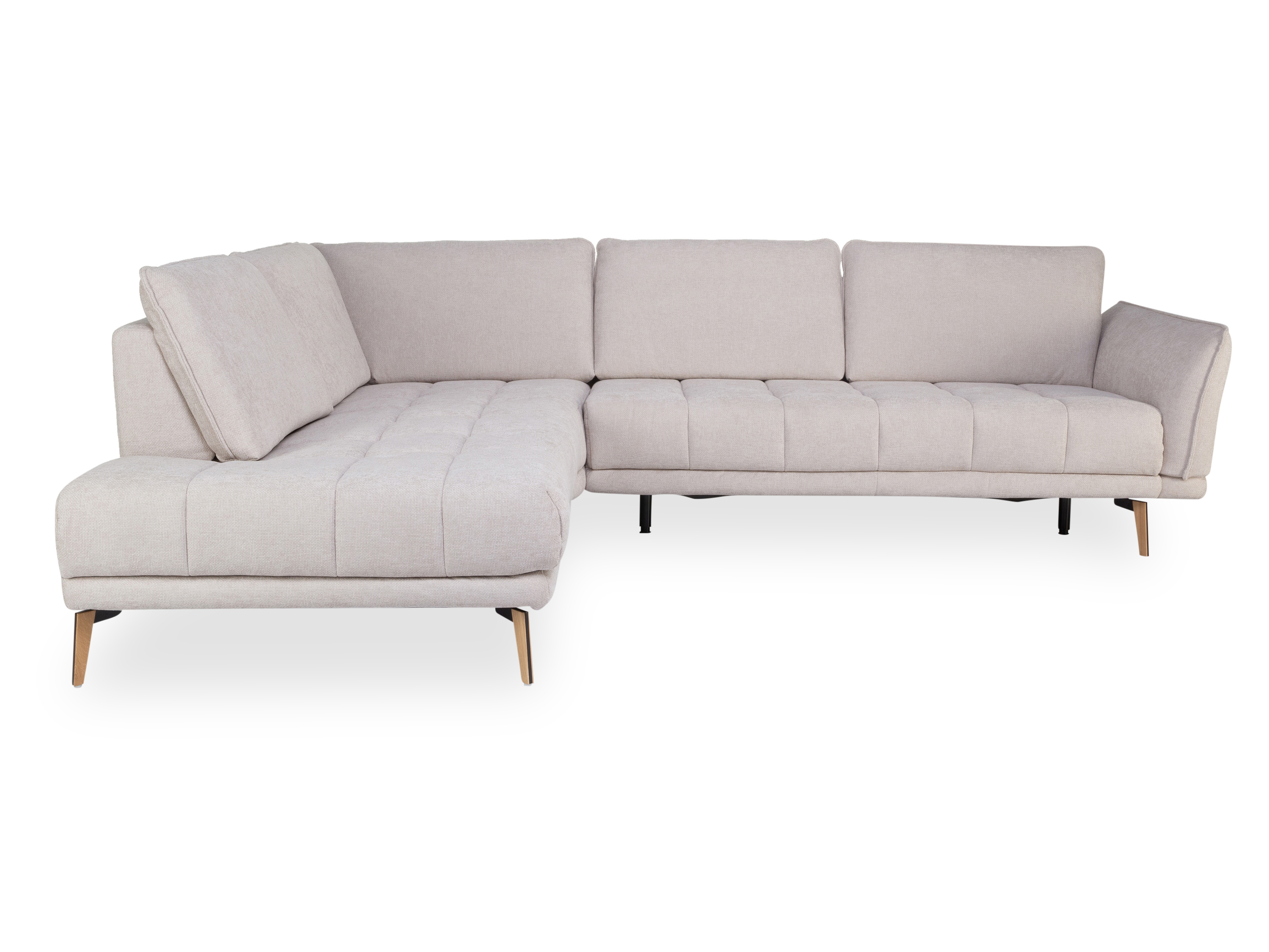 · mit einem Kombielement gerade und Anstellhocker vorstehend links (1,5KOGL) und einem 3-Sitzer mit Armlehne rechts