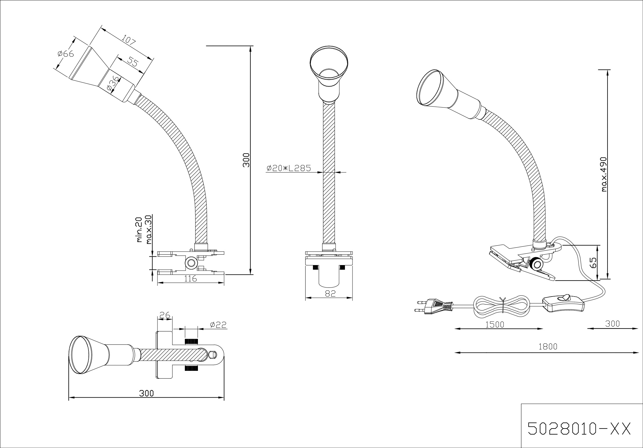 Produktinformationen "Schlauch-Klemmleuchte FLEXO"