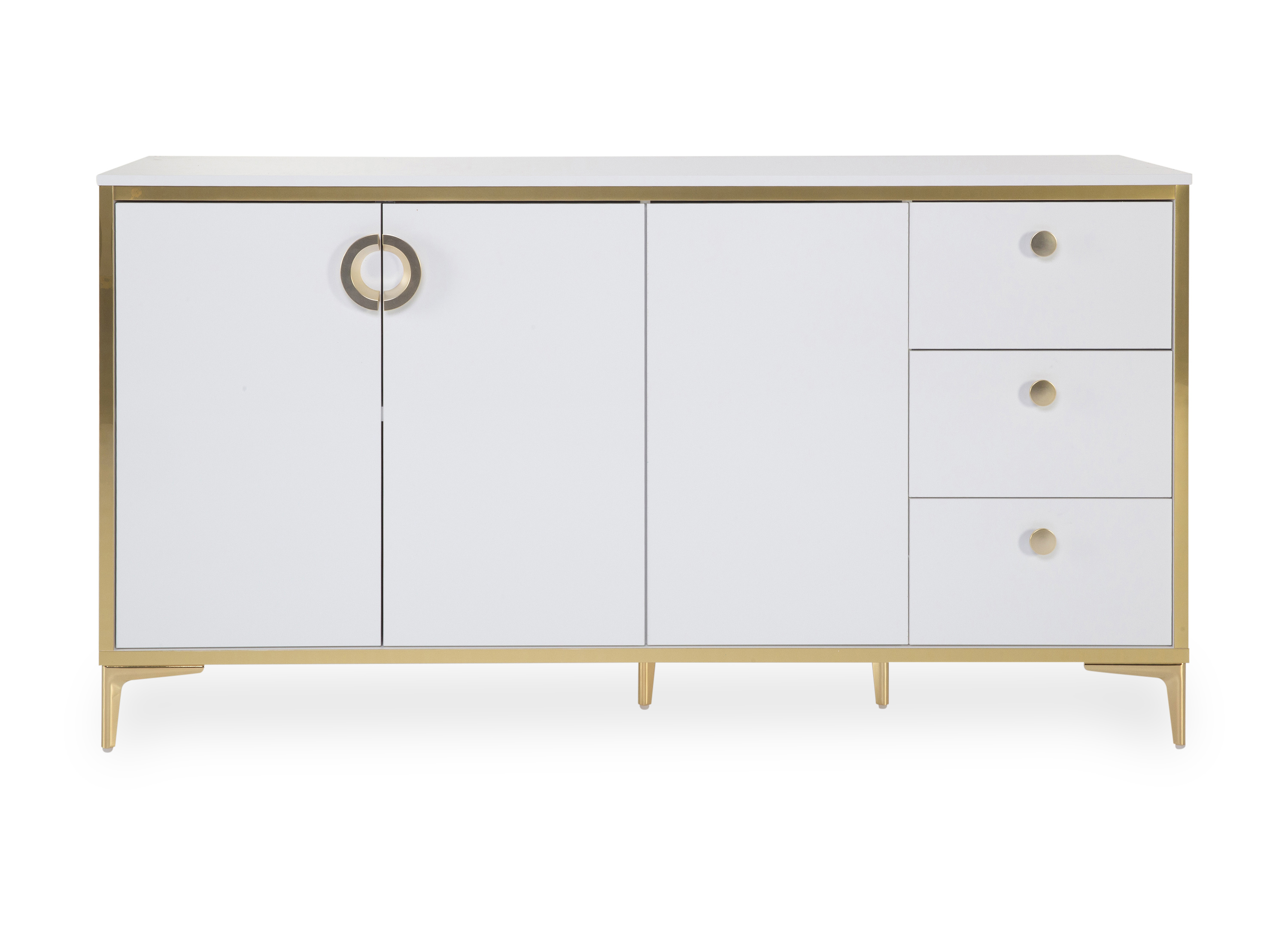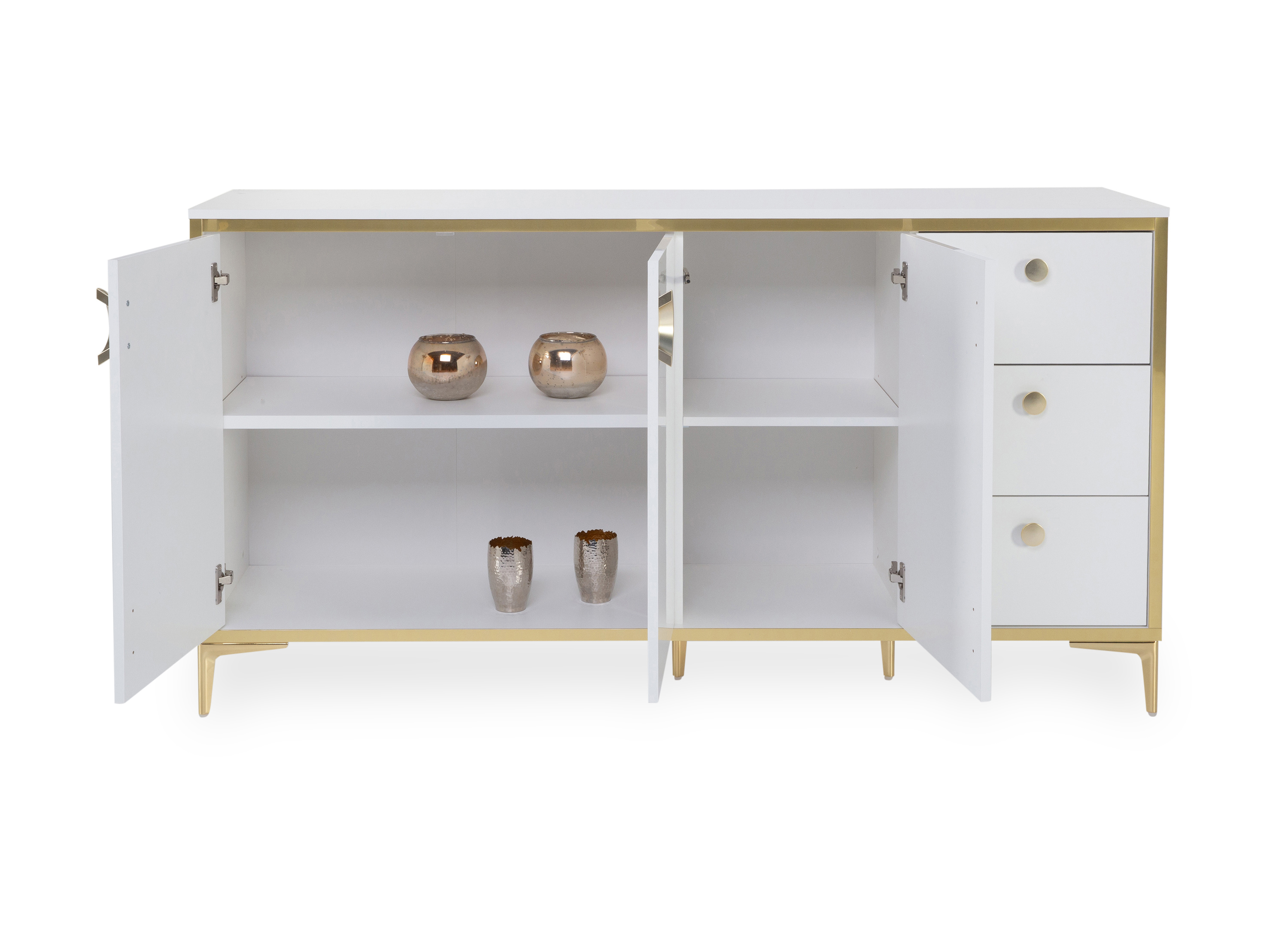 · Front: Hochglanz weiß · Korpus: Hochglanz weiß · Absetzung: gold · Griff: gold · Füße:... mehr