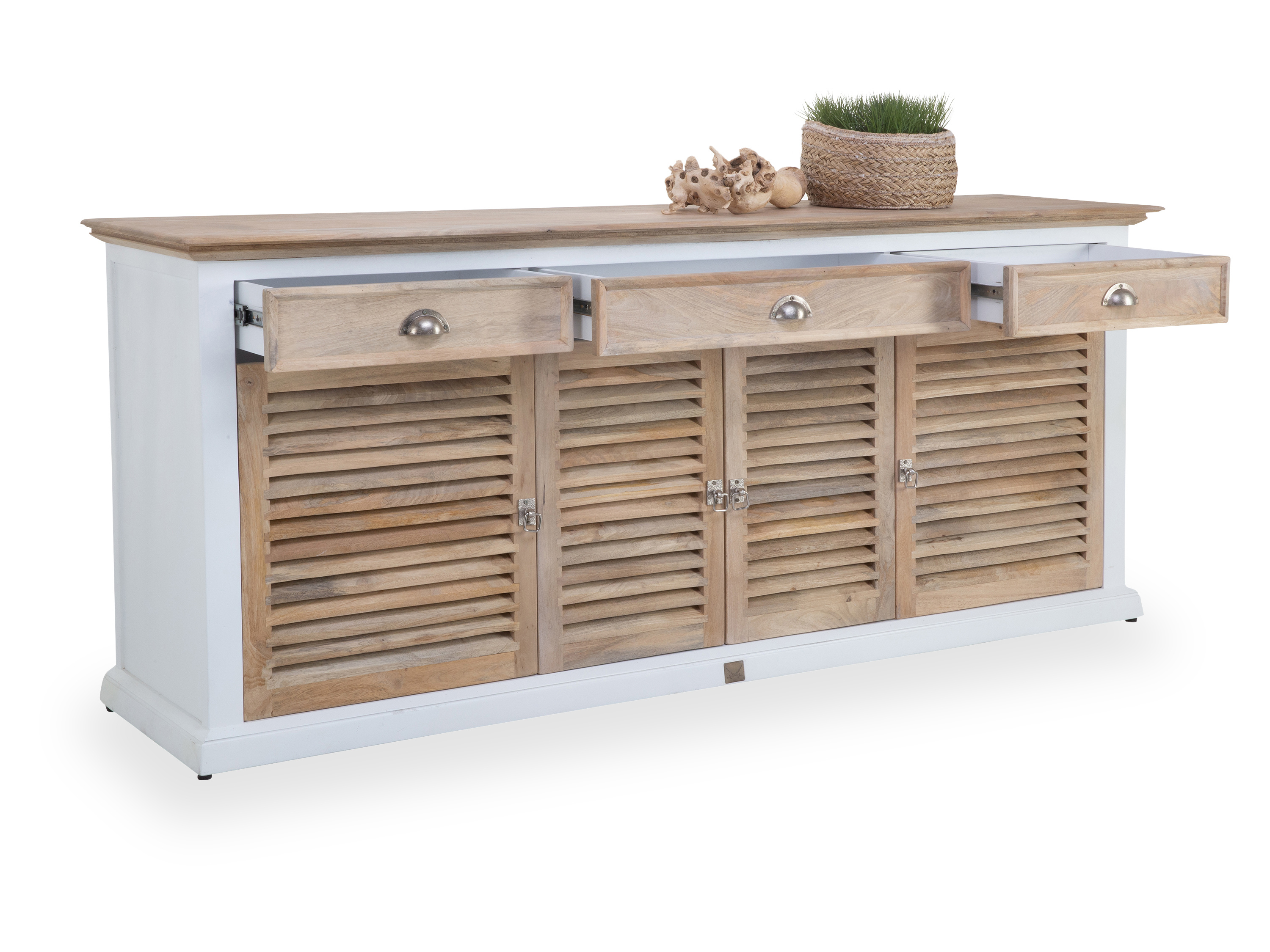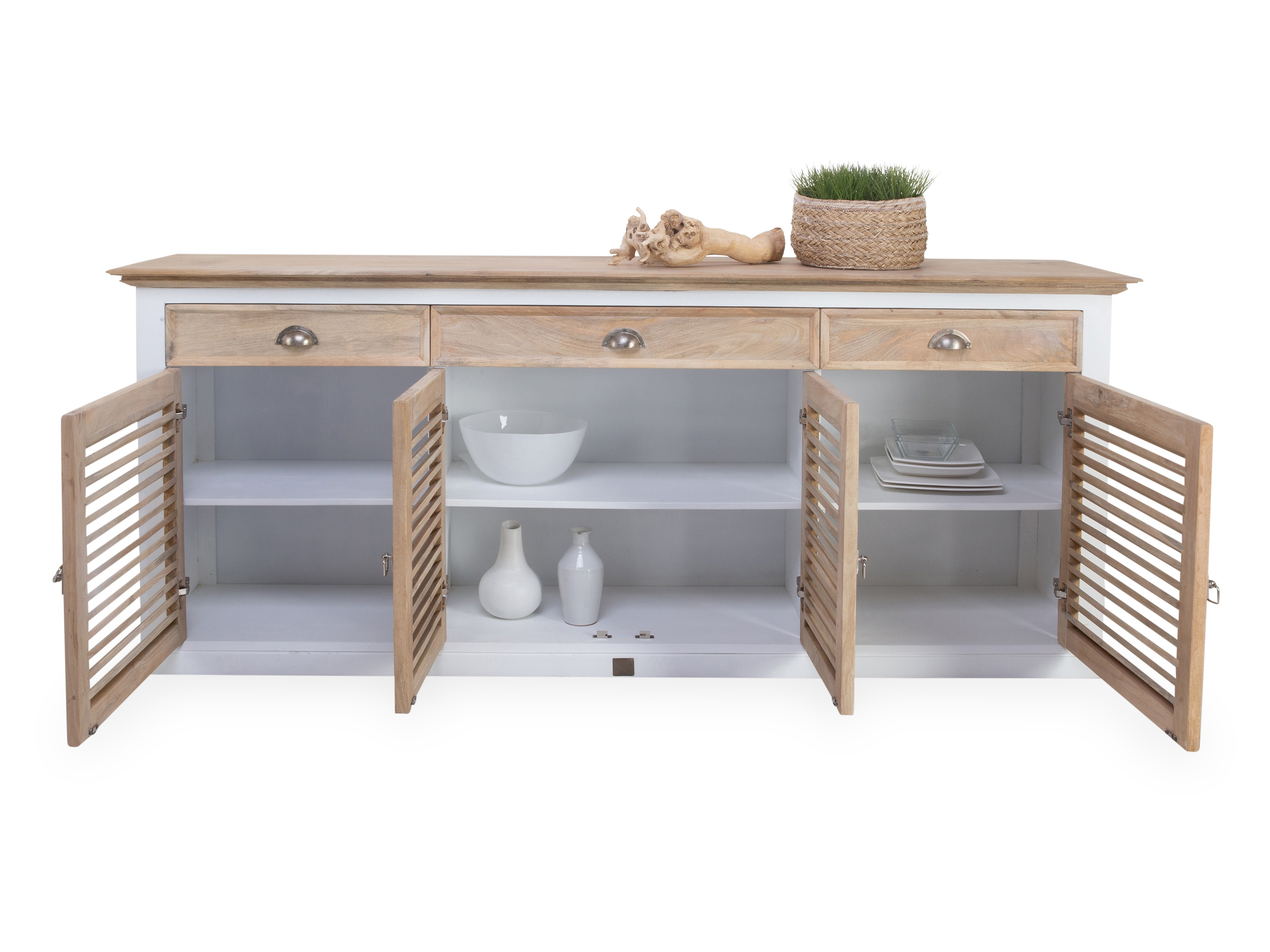 · mit vier Türen, drei Schubladen und drei Einlegeböden