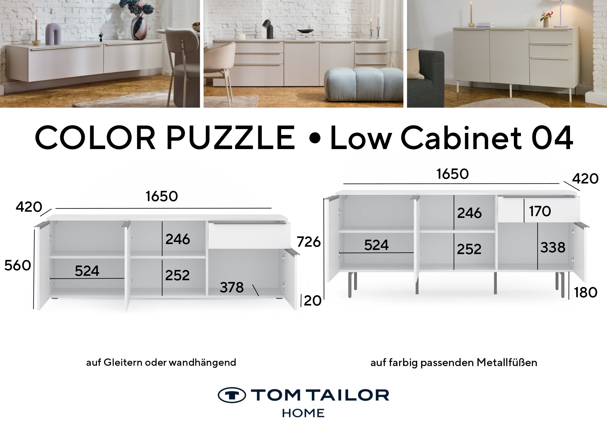 Dieses Sideboard verleiht jeder Wohnung ein behagliches Ambiente. In der Kommode werden sämtliche Qualitäten und Highlights der Marke TOM TAILOR zusammengeführt. Das Möbel kann auch optisch durch sein modernes Design begeistern. Die Kommode aus Dekor kommt mit einem Breitenmaß von insgesamt 165 cm, einer Höhe von 72 cm sowie einer Tiefe von 42 cm daher. Sie werden dieses Möbel lieben.