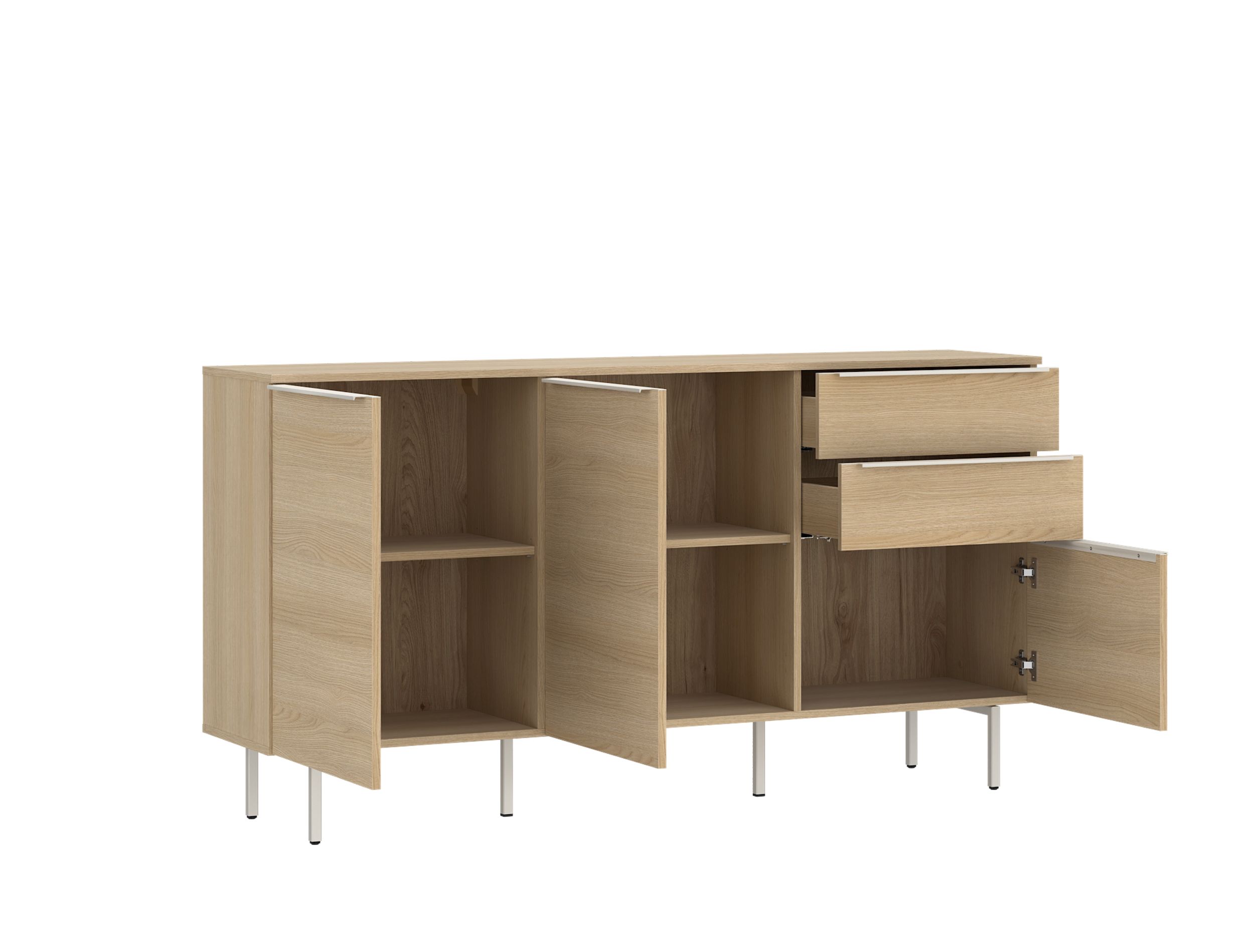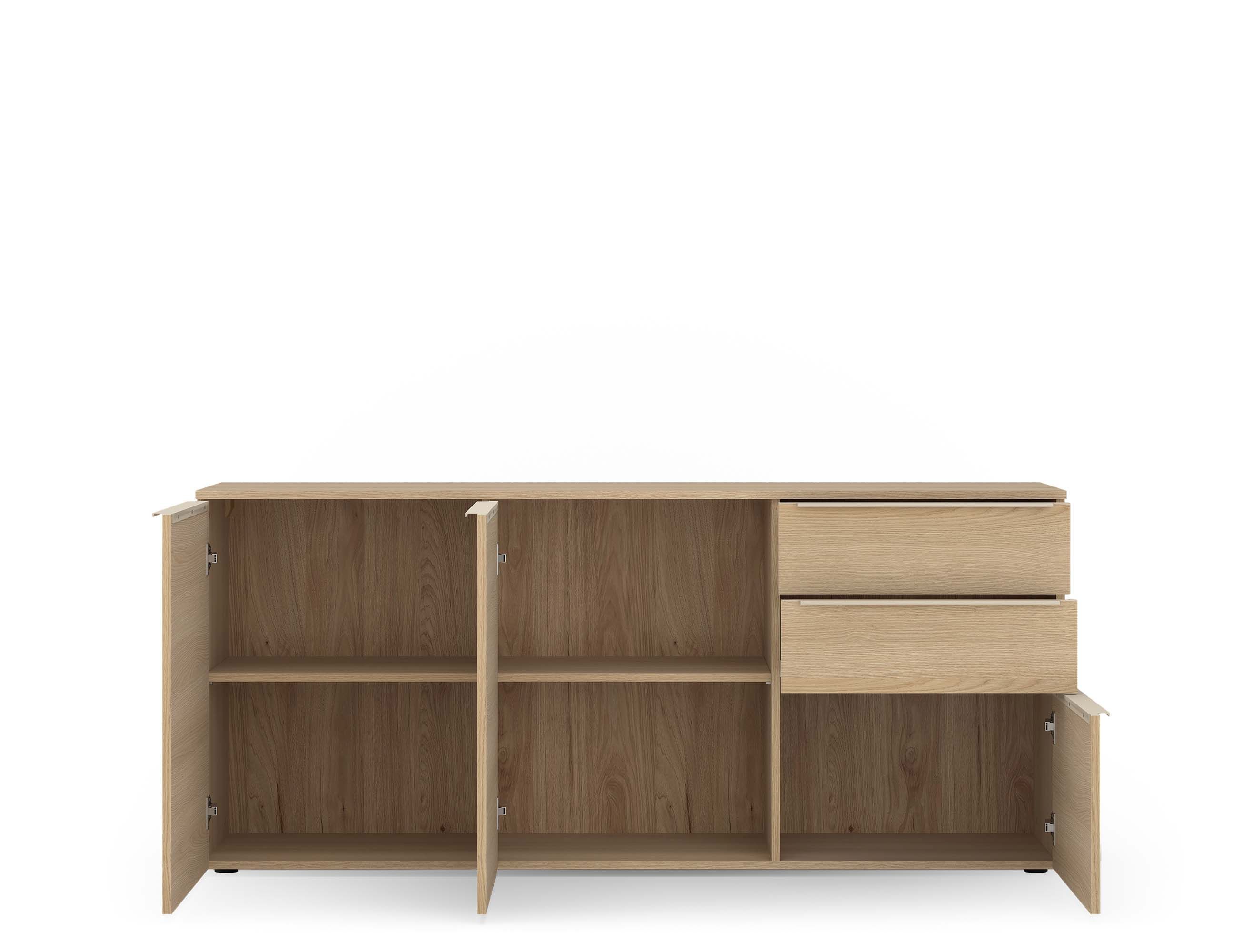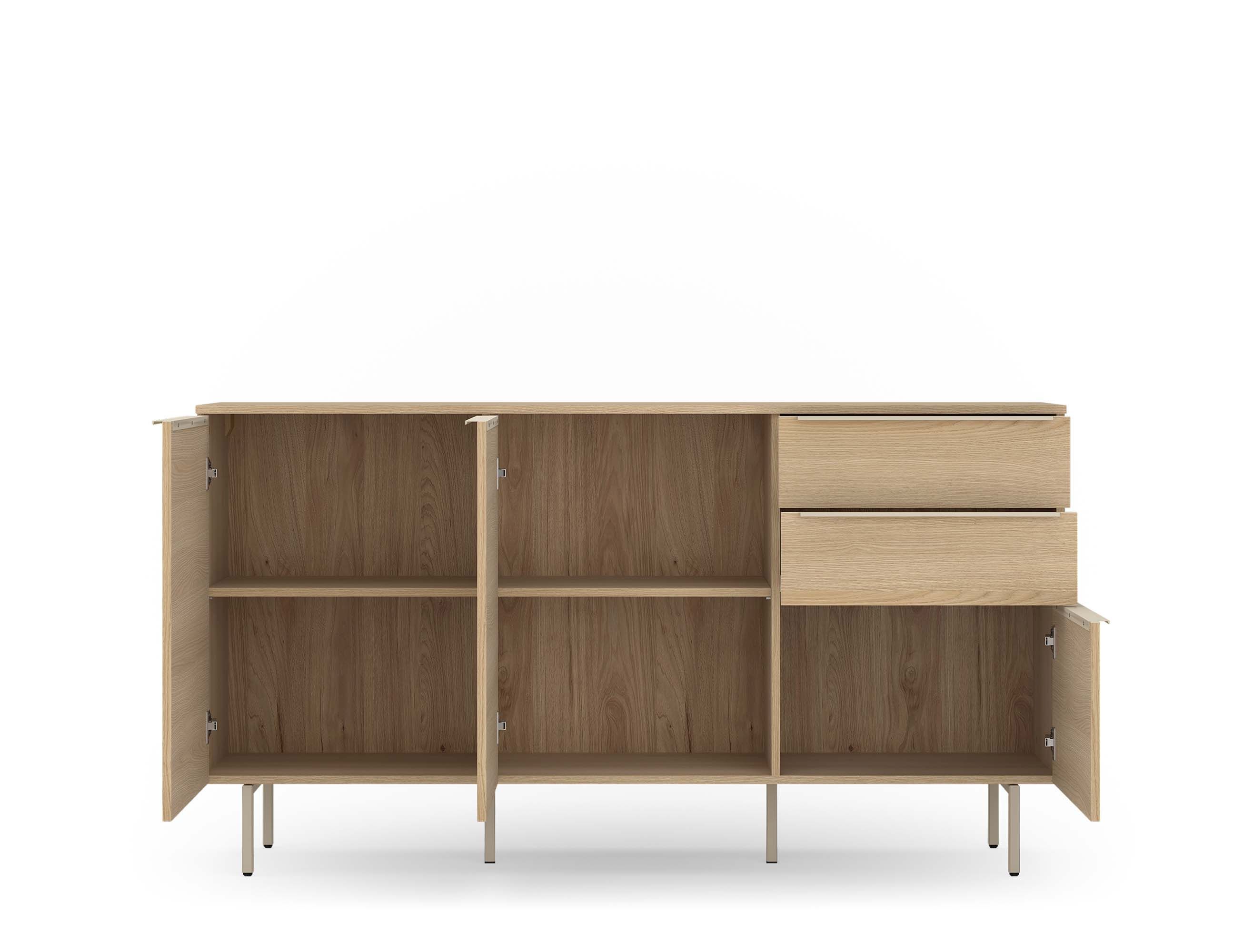 · mit drei Türen und zwei Schubladen