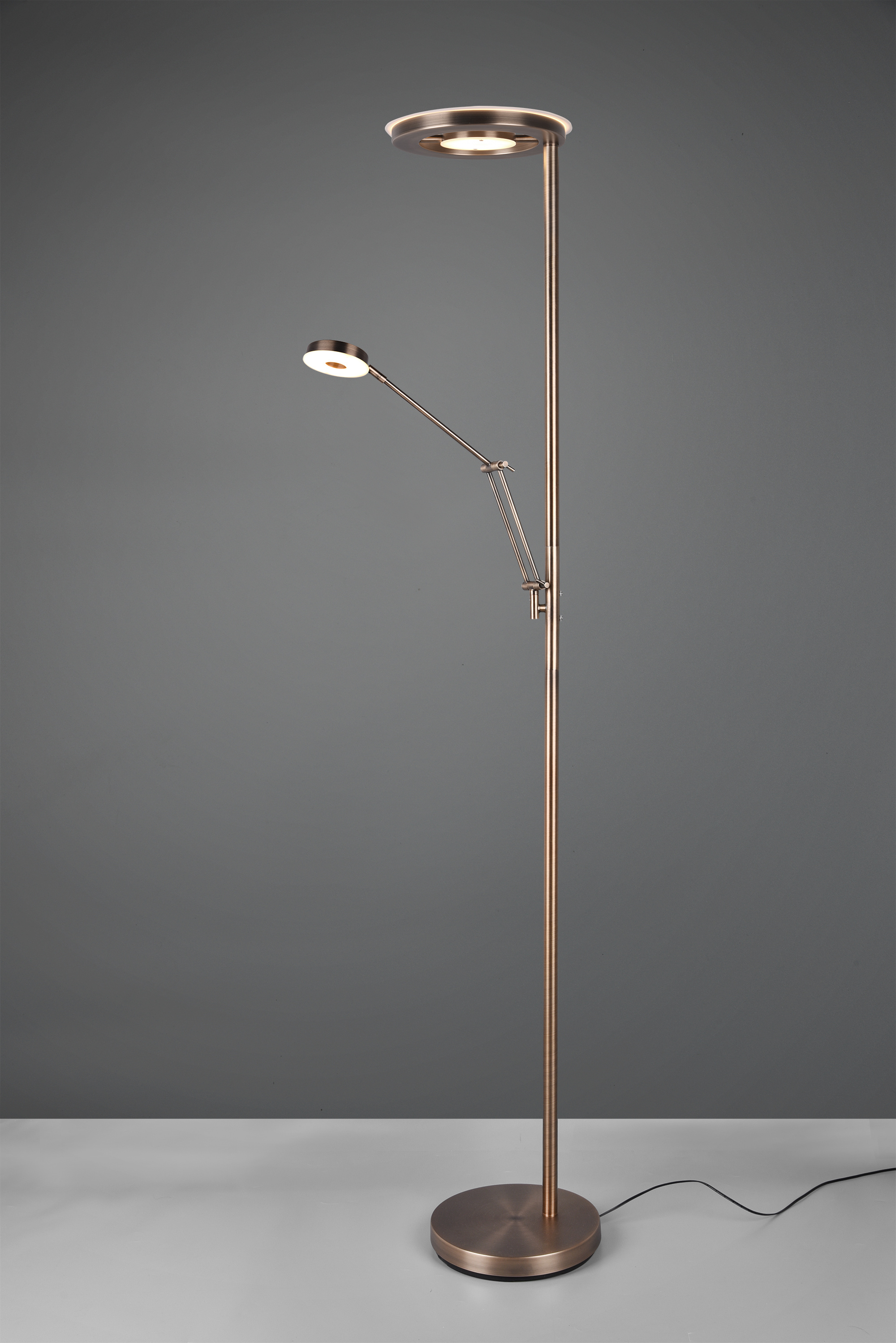 · Mit vielen praktischen Funktionen überzeugt der moderne Fluter BARRIE. Über zwei einzelne Touchpunkte lassen sich sowohl die Hauptlichtquelle als auch der Lesearm getrennt voneinander schalten. Zusätzlich können die Lichtfarbe und die Helligkeit beider Lichtquellen individuell über die Touchpunkte angepasst werden. Durch die integrierte Memory Funktion stellt sich das zuletzt eingestellte Lichtszenario automatisch wieder ein. Bei der Hauptlichtquelle ist das innere Licht schwenkbar, sodass der Lichtfall auch nach oben ausgerichtet werden kann. Der Lesearm lässt sich flexibel an zwei Punkten verstellen, sodass die Position ebenfalls frei gewählt werden kann. Die Farbgestaltung in Altmessing lässt sich sowohl in klassischen, als auch in modernen Wohnräumen wunderbar integrieren. Darüber hinaus verfügt die Leuchte über eine moderne LED Technologie, die sich durch eine hohe Lichtqualität und Energieeffizienz auszeichnet. Im Vergleich zu herkömmlichen Halogen Leuchtmitteln lassen sich bis zu 80% der Energiekosten sparen. Zusätzlich haben LED Lichtquellen eine lange Lebensdauer, produzieren weniger Wärme und schonen die Umwelt.
