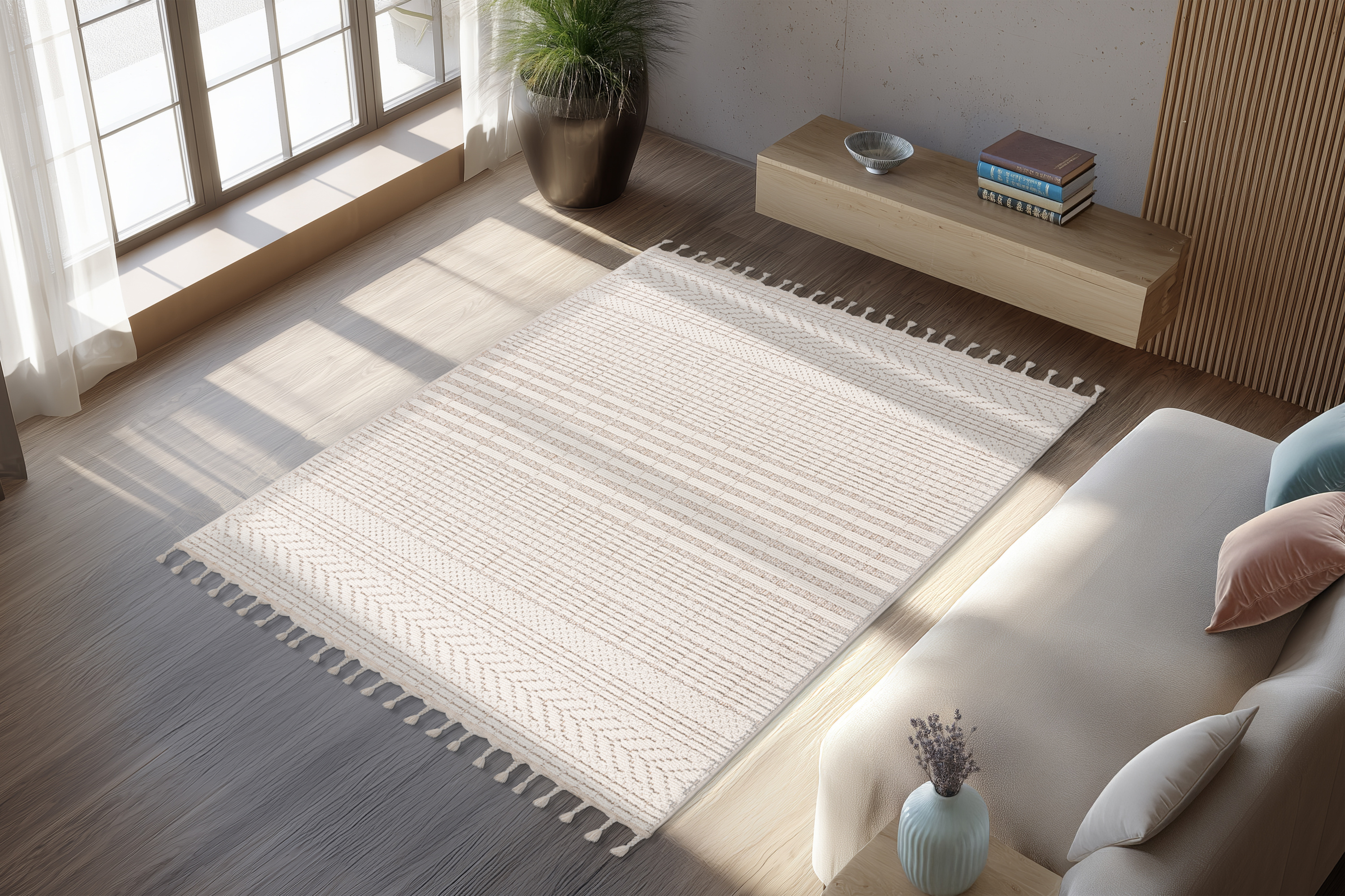 · 100 % Polypropylene · Florhöhe: 9mm · maschinell gewebt · handgeknüpfte Fransen ·... mehr