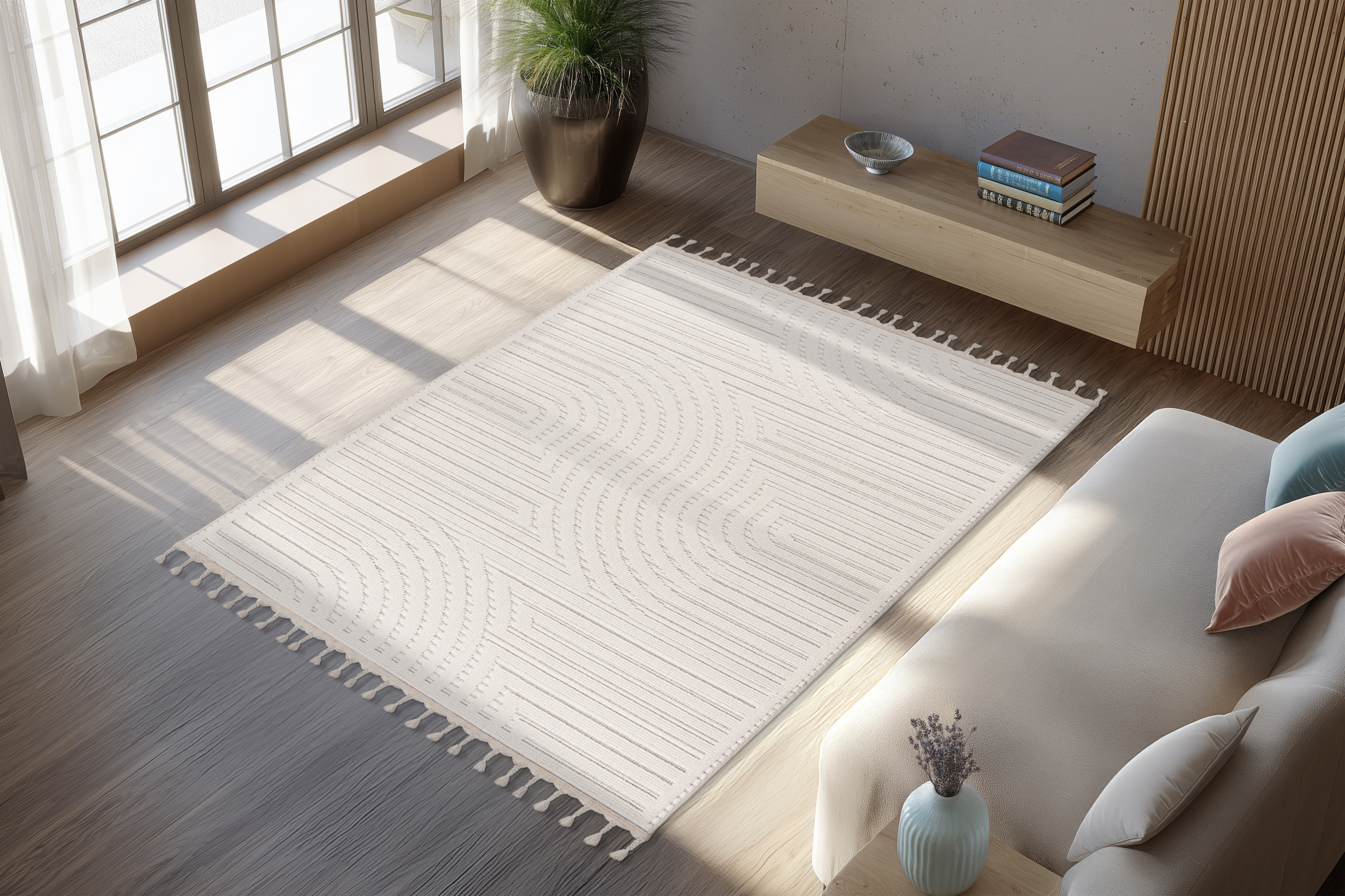 · 100 % Polypropylene · Florhöhe: 9mm · maschinell gewebt · handgeknüpfte Fransen ·... mehr