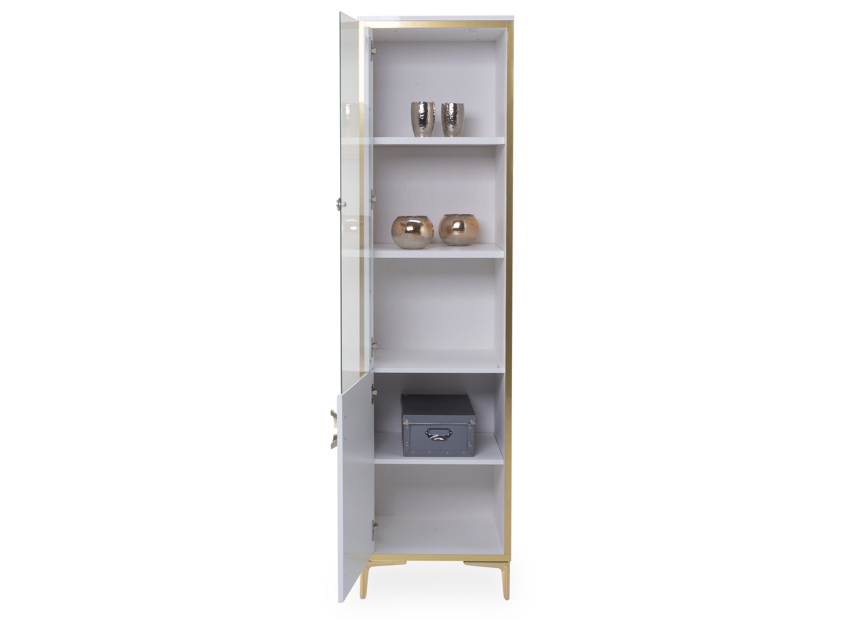Ob Porzellan, Geschirr oder Bücher: diese Vitrine setzt Ihre persönlichen Sammlerstücke ins perfekte Licht. Die Vitrine bereichert Ihr persönliches Gestaltungskonzept durch das moderne Design zusätzlich. Sie hat eine Gesamtbreite von 50 cm, eine Höhe von 189 cm sowie eine Tiefe von 42 cm. Mit diesem Möbel erhalten Sie zusätzlichen Stauraum für Ihre schönsten Ausstellungsstücke.