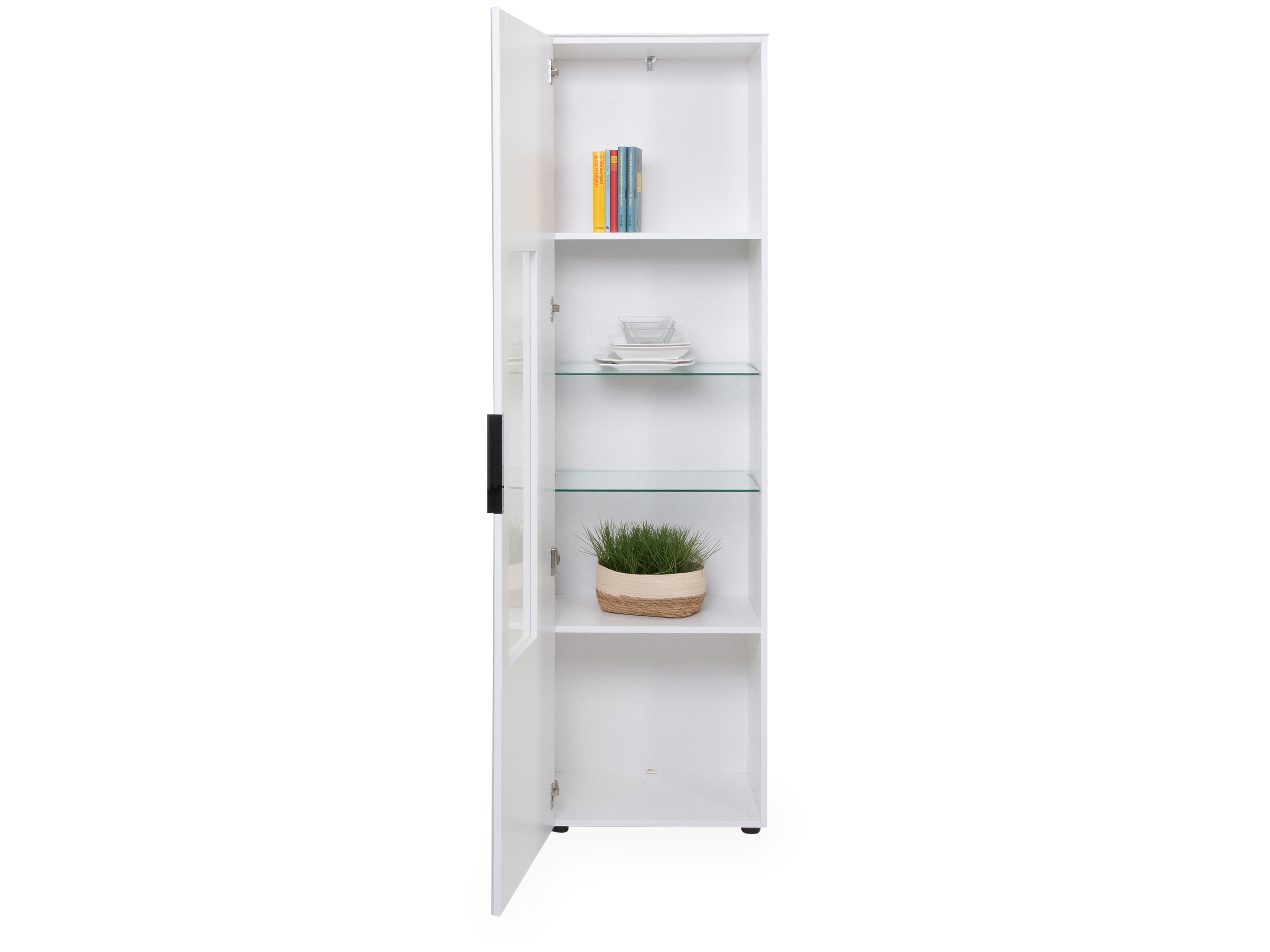 · mit einer Tür mit Teilverglasung, zwei Einlegeböden und zwei Glasböden