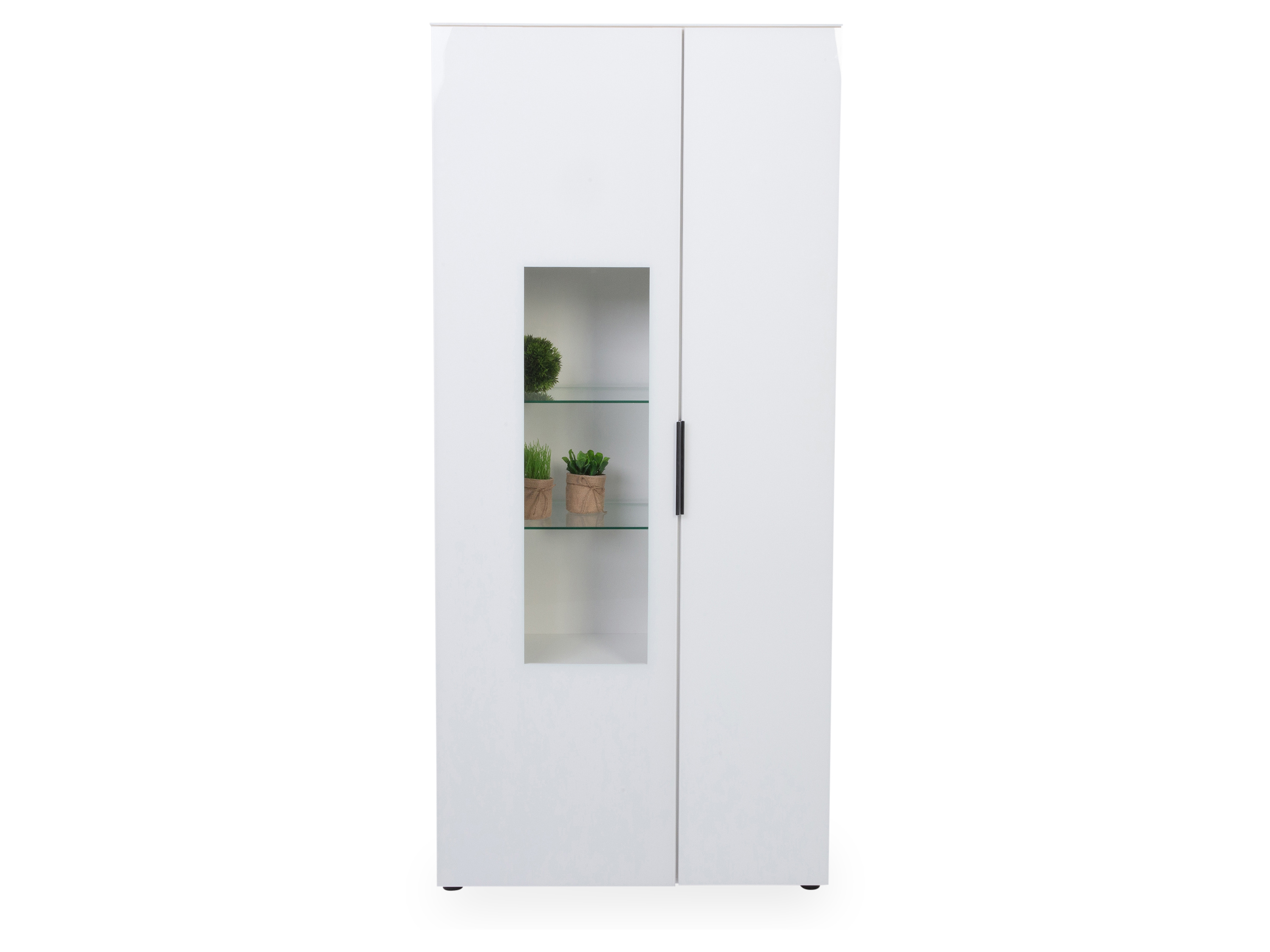 · mit einer Tür, einer Tür mit Teilverglasung rechts, fünf Einlegeböden und zwei Glasböden